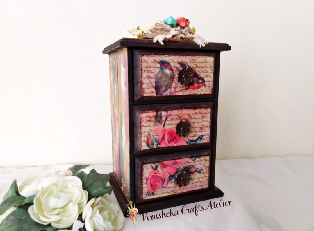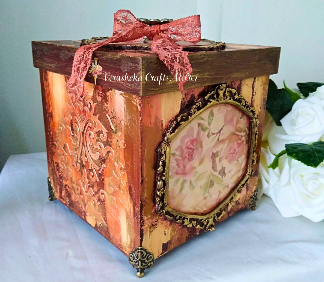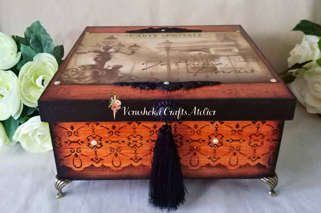 ✓ (envejecidos, sombreados, texturas, relieves y patinas). Son 3 proyectos, un Baúl, una caja cuadrada y una caja libro.