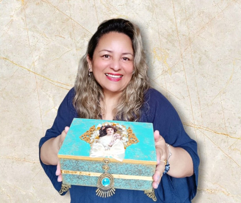 Verushcka Saldaña es una profesora y artista con más de 25 años de experiencia en pintura decorativa y creativa. Inició su camino en el arte mientras trabajaba como maestra en un colegio y también enseñaba español a adultos en Brasil. Con el tiempo, la pintura se transformó en su vocación principal y en una poderosa herramienta de enseñanza. Tomó clases de pintura con profesores de Brasil y Portugal.