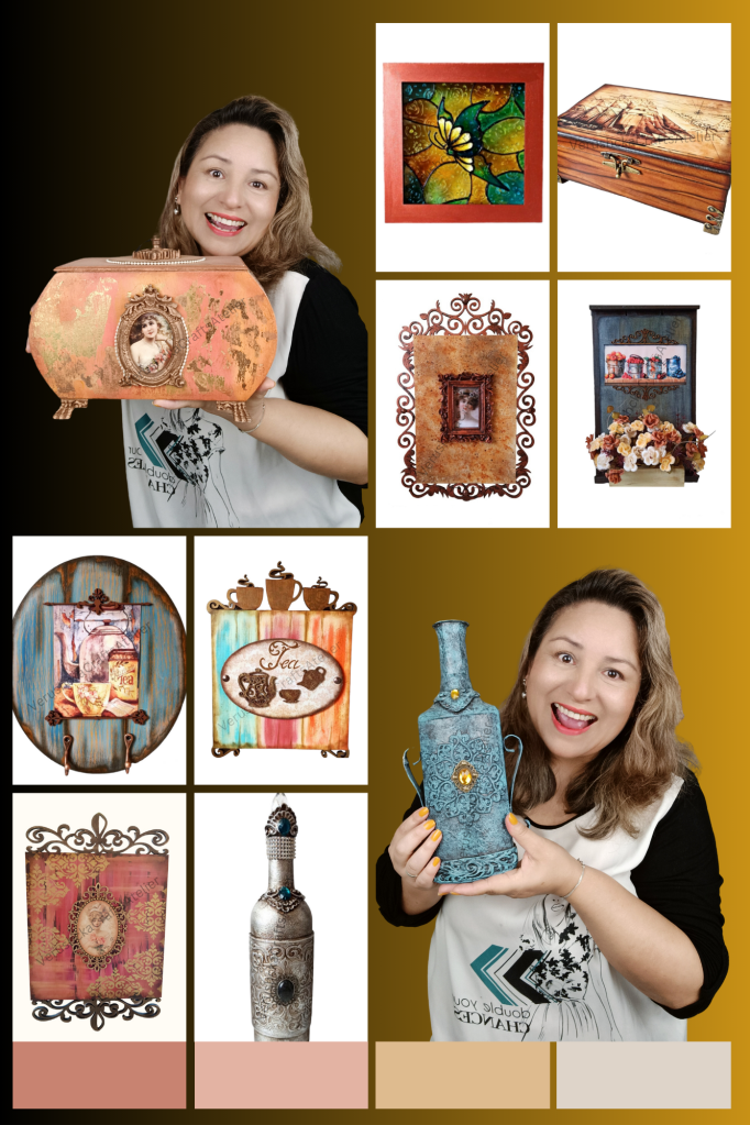 Son 3 super clases de técnicas con efectos de pátina, efectos con textura, efectos metálicos, decoupage y craquelado sobre vidrio, que fueron transmitidas en nuestro evento llamado «Semana Creativa» y ahora están disponibles con acceso vitalicio de manera exclusiva para las Alumnas de este curso.